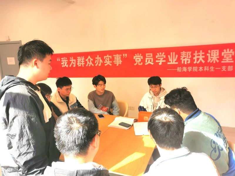 为不断发挥党员先锋模范作用,争做群众满意的党员,11月14日,本科生一支部在“党员常态化学习、教育、服务基地-悦习驿站”举办“我为群众办实事”学业帮扶课堂,支部党员和船舶专业部分同学参加。