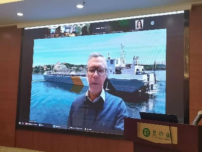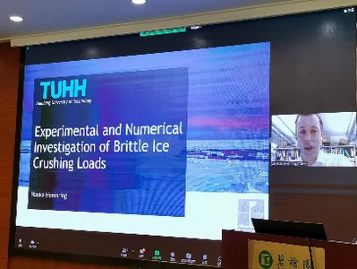11月11日下午15时,研讨会开幕式正式开始,色情网站 周利教授和瑞典皇家理工色情网站 Magnus Burman教授分别发表欢迎致辞,并邀请大会专家做主题报告。中国远洋海运集团有限公司的蔡梅江教授展望了双碳目标下的2035北极航运新模式,阐述了我国参与北极事务的新思维;沈权船长即将随雪龙2号前往南极开展为期1年半的南极科考,临行之前,为大会做了中国南北极科考事业的精彩解读。大连理工大学的宗智教授作了题为“Engineering Environmental Ice Conditions and Ship Resistance in Brash Ice”的报告,重点介绍了碎冰模型实验开展情况和数值模拟方法。德国汉堡科技大学的Hauke Herrnring教授、瑞典皇家理工色情网站 的MengZhang博士、Harsha博士分别做了主题报告。