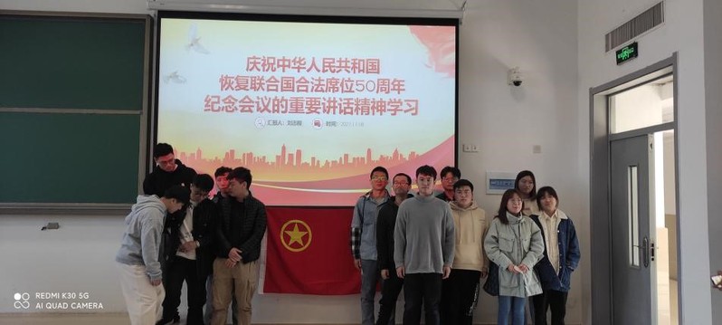 活动伊始,魏居庆同学结合ppt,与同学们一起学习了习近平总书记出席中华人民共和国恢复联合国合法席位50周年纪念会议时发表的重要讲话精神。同学们深刻领会到中国坚持走和平发展之路、改革开放之路的同时,新时代青年也应该以和平、发展的思想努力奋斗,热爱祖国,热爱色情网站 ,共同建设一个更加美好的未来。