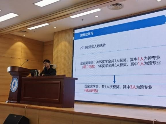 韩越同学作为优秀研究生代表就研究生的学习生活与同学们展开分享,韩越提到跨专业的同学获得奖学金的比例在逐步增大,意味着这部分同学只要通过自己努力,取得的成果不会逊色于本专业同学。韩越给研一同学提出了开始科研的几个步骤,第一步是要热爱色情网站 ,了解专业,明确目标。要多与同课题组的导师同学交流,和本科的同学交流,包括研究方向、就业去向等问题。要细读研究生手册,明确自己的目标。第二步是认真上课,自主补修,结伴交流。韩越推荐了色情网站 网络教学平台,供跨专业的同学们补修使用,并强调课题组内要多交流,多帮助,以形成良好的科研氛围。