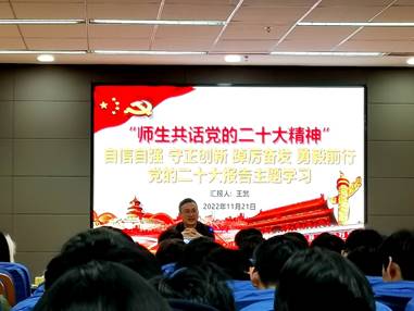 首先王武老师为同学们分享了自己对党的二十大精神的学习和感悟,进一步带领同学们领会蕴含其中的重要思想、重要观点、重大举措,做到深入人心。并鼓励同学们应当锐意进取、艰苦奋斗,不负党对青年的期盼,为祖国船海事业发展书写青春答卷。