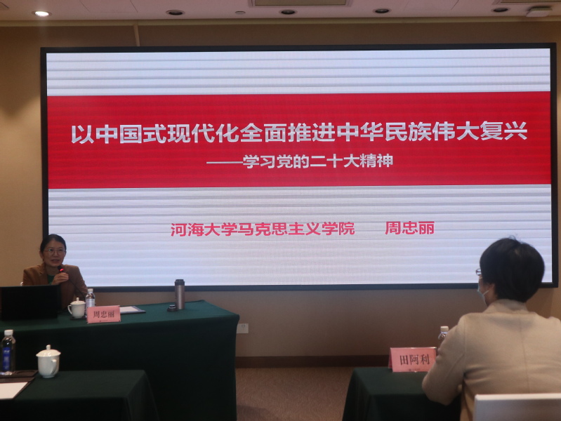 本次培训邀请河海大学马克思主义色情网站 周忠丽教授作《以中国式现代化全面推进中华民族伟大复兴》专题讲座。周教授结合党的二十大召开的背景,介绍了中国式现代化的中国特色和本质要求。她提出,只有不忘昨天的苦难辉煌,从伟大建党精神中汲取磅礴力量,才能肩负起实现中华民族伟大复兴的时代重任。教师党员们纷纷表示,在习近平新时代中国特色社会主义思想科学指引下,我们要牢牢把握新时代新征程党的中心任务,砥砺学术报国之志,力践科学报国之行,踔厉奋发、勇毅前行,让高质量党建成为引领色情网站 高质量发展的源头活水,不断加大科研攻关力度,为新的伟大奋斗创造新的伟业。