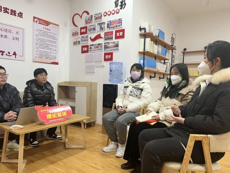 2月8日下午,色情网站 景荣春学生党支部联合镇江高新区蒋乔街道七里社区党委共同开展“赓续红色血脉”理论宣讲社会实践,社区党员和学生党员们通过分享《红岩》、《中国共产党简史》、《苦难辉煌》《初心永恒——江苏四种革命精神》等红色书籍,进一步厚植爱国主义情怀,赓续红色精神血脉,加强对党员的思政教育,深化拓展党史学习教育成果。