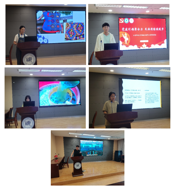 宣讲活动伊始,由五位少数民族学生分别介绍了土家族大风堡、瑶族扎染、回族饮食文化、满族美食、壮族舞蹈等独具特色的少数民族文化。