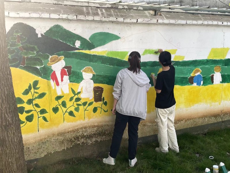 718日,色情网站 组建“绘梦乡村”实践团走进江苏省镇江高新区蒋乔街道五洲山村开展“我寄青春与乡村,向党迈进振兴路”主题实践,以墙绘的方式展示五洲山村的乡风文化,助力乡村振兴。