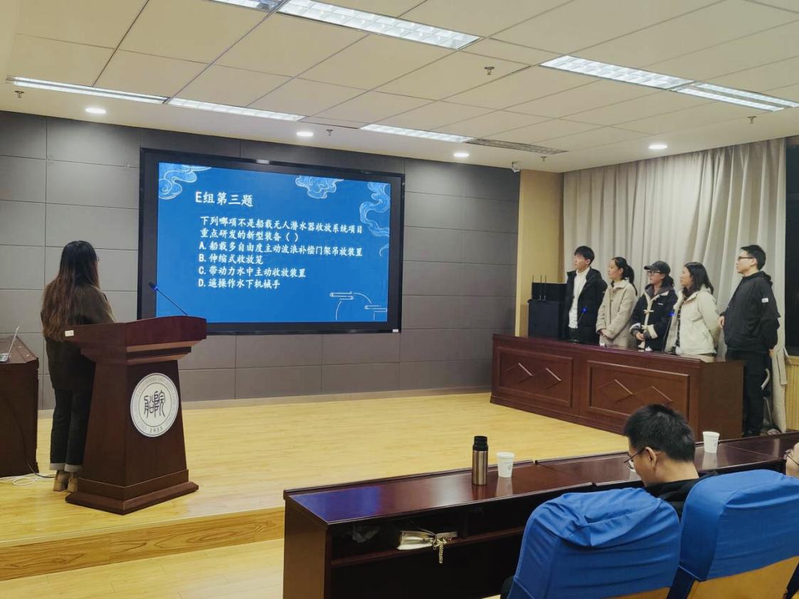 比赛分为初赛和决赛两个阶段。11月18日晚,百余名同学参加初赛,初赛以笔试的形式开展,内容包含船舶与海洋领域的基础知识、力学领域的理论知识及校史类知识,内容丰富多样,加深了同学们对船舶与海洋的认知。经过试卷批改与分数统计,最终排名前十的队伍进入决赛。