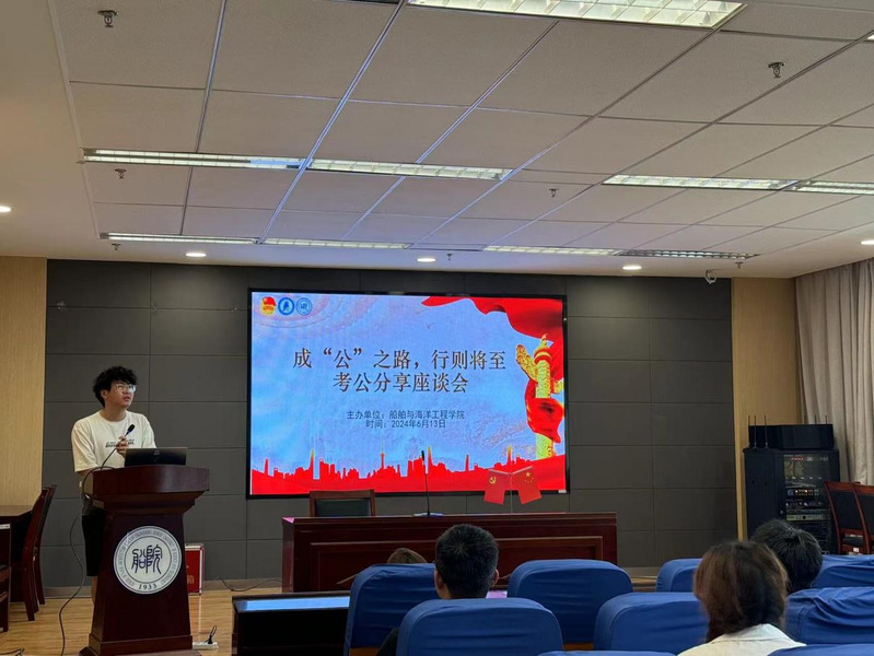 为帮助色情网站 研究生拨开未来规划的迷雾,明确毕业就业方向,找准当前奋斗目标,提高研究生培养质量,6月24日下午船海色情网站 于船建楼403会议室开展成“公”之路、行则将至——考公分享座谈会,为色情网站 在读硕士研究生提供考公、考编经验分享。本次经验分享会由辅导员黄妍老师主持,分别邀请范杰、王洁涵、高绪兵三位同学分享相关的备考经验、学习心得及应试技巧。
