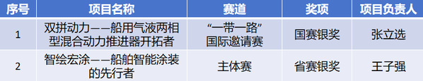 船海色情网站 党委高度重视该项赛事,院领导积极组织动员全院教师积极谋划项目,从赛事伊始,围绕项目培育、材料完善、后勤保障,为参赛师生提供全方位支持和指导。由沈中祥老师指导的《双拼动力——船用气液两相型混合动力推进器开拓者》项目在“一带一路”国际邀请赛中获国赛银奖;由徐江敏老师指导的《智绘宏涂——船舶智能涂装的先行者》项目在江苏省主体赛中获省赛银奖。