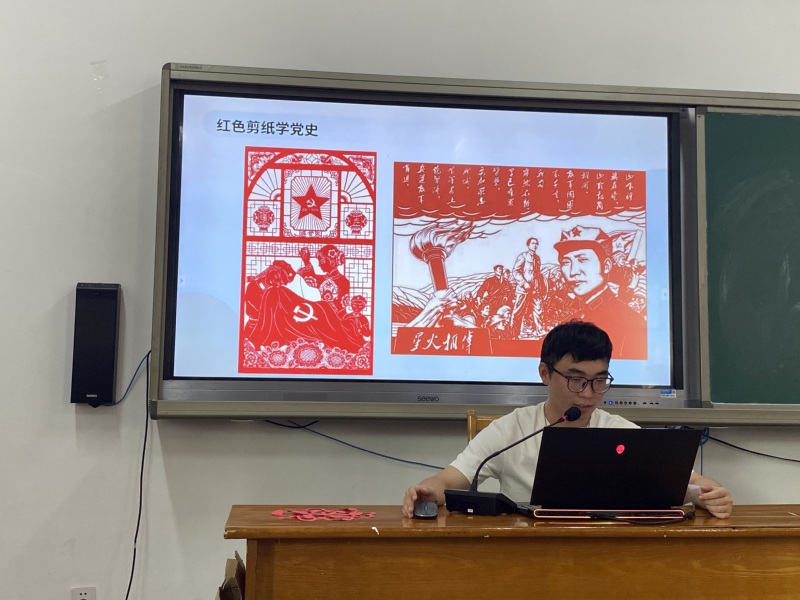 研究生陈腾以图文并茂的微课形式,带领三中学生穿越徐州剪纸的历史长廊。从汉代“金银平脱”技艺的起源,到明清民俗剪纸的繁荣;从“喜鹊登梅”“龙凤呈祥”的吉祥符号,到《百鸟朝凤》《运河帆影》的当代创新,一幅幅经典作品投影于屏幕,勾勒出徐州剪纸“粗犷不失精巧,古拙兼具灵动”的艺术特质。