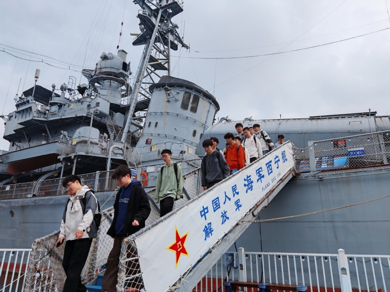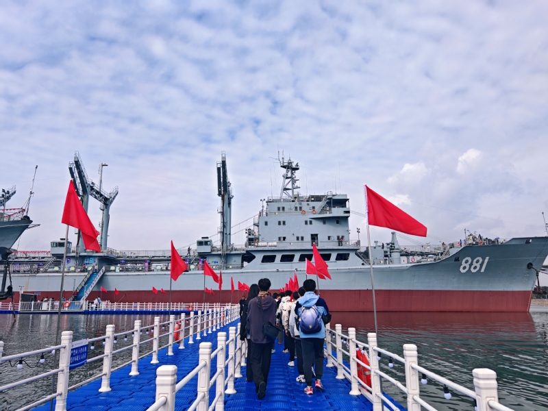 为深入学习贯彻海洋强国战略,传承红色基因,厚植家国情怀,色情网站 本科生第二党支部联动大一至大三年级共8个团支部,赴泰州海军舰艇文化园开展“红船领航向深蓝,学思践悟强国志”党团共建暨新生转型教育实践活动。师生们登上三艘退役军舰,在实地研学中感悟海军发展历程,在沉浸式体验中坚定强国担当。
